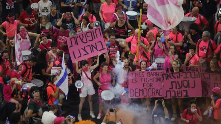İsrail’de tartışmalı yargı reformuna karşı protestolar 33. haftasında da devam ediyor. Başkent Tel Aviv olmak üzere İsrail’in birçok kentinde on binlerce kişi Başbakan Binyamin Netanyahu’nun yargı reformuna karşı çıkmak üzere sokaklara döküldü. Tel Aviv’de bulunan Kaplan Caddesi’ndeki protestolar, İsrail’in Eurovision Şarkı Yarışması birincisi Netta Barzilai’nin İsrail’in milli marşı “Hatikva”yı seslendirmesiyle başladı. İsrail bayrakları taşıyarak yürüyüş yapan protestocular, pankartlar, davullar, düdükler ve kornalarla Başbakan Netanyahu’ya tepki gösterdi. Sloganlar atan İsrailliler hükümetin yargı reformu talebini eleştirdi.
